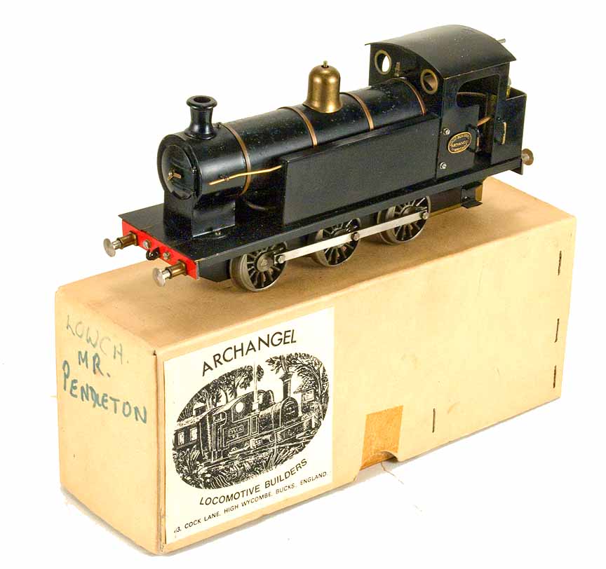 Early Archangel -- 1976. 0 gauge, alcohol fired. Throttle, safety valve. Slip-eccentric reversing. Original box.
