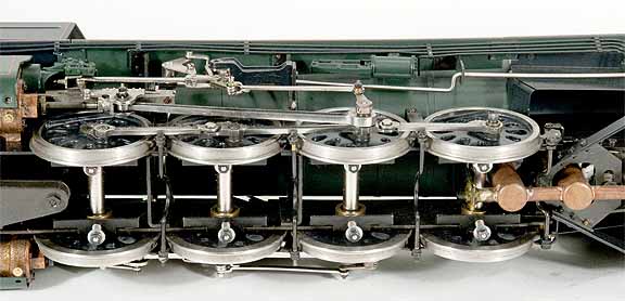| Aster SNCF 141R 2-8-2 $4,300 + post Here is a classic Aster locomotive. It was assembled from a kit by Don Kroeger of Houston many years ago. I have had it for probably the past 25 years. It is in superb condition and may never have been run. It runs smoothly on air. The engine runs on alcohol and has an internally fired JvR type-B boiler. It has two, double-acting D-valve cylinders, Walschaerts valve gear controlled from the cab, and a hand pump in the tender. Boiler fittings include throttle, blower, water glass, pressure gauge, blower, and safety valves. The chassis is fully sprung. Full assembly instructions and drawings are included. If you are interested in this engine, or have some questions or need additional pictures or information, please e-mail us at bannerworks@comcast.net. |